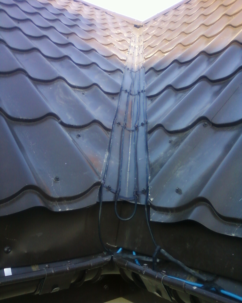 звису покрівлі , так званий водовідбійник . Кабель укладається " доріжкою " у кілька паралельних ліній в підвісну жолоб або уздовж водовідбійника .